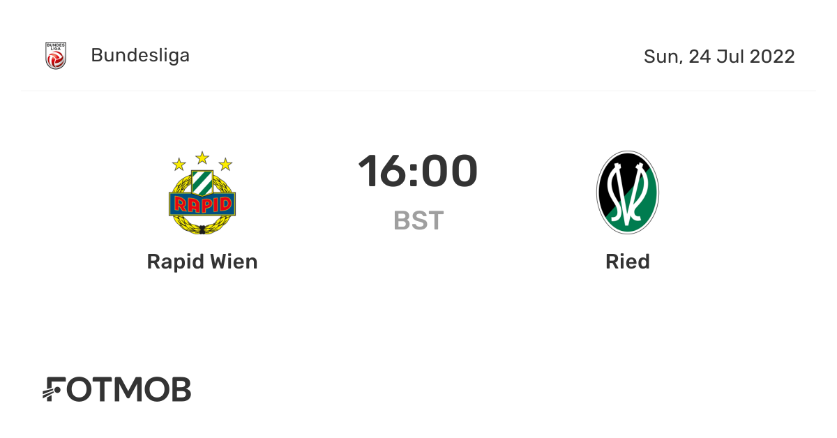Rapid Wien Vs Ried On Sun Jul 24 2022 15 00 Utc Live Results Lineups Shot Map And H2h